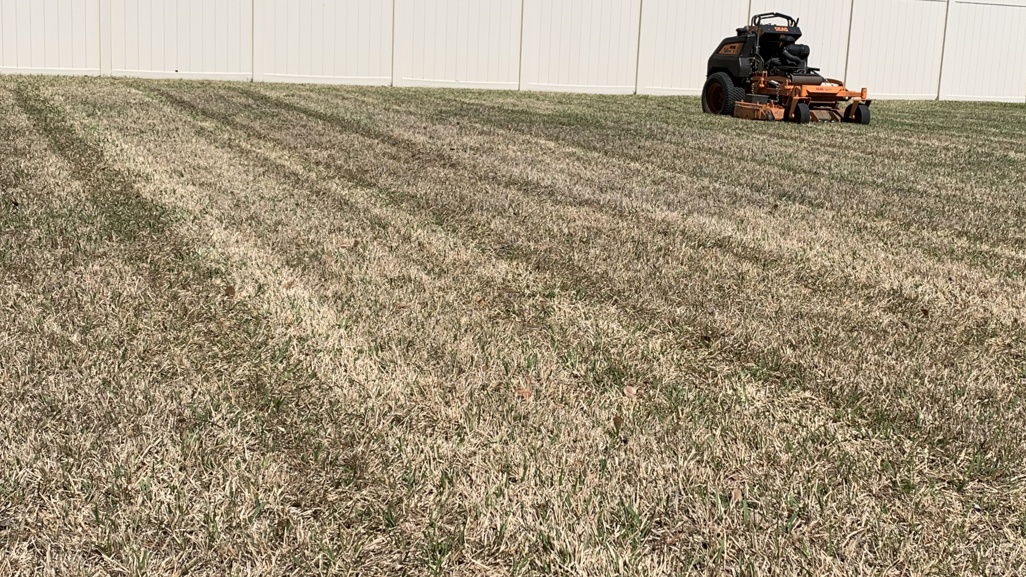 mostly dormant St. Augustine lawn in Middleburg FL after mowing
